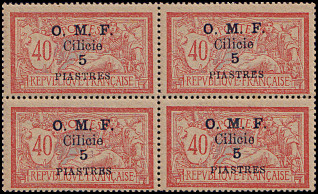 5 Piaster auf 40 Centimes rot/ blau |
