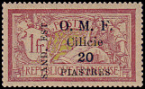 1 Piaster auf 25 Centimes blau, graues Papier |