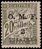 1 Piaster auf 25 Centimes blau, weißes Papier |