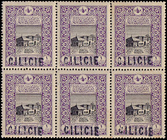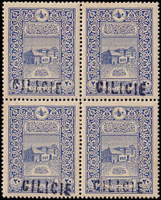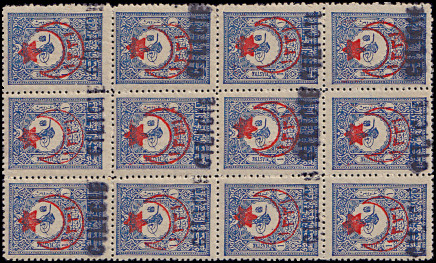 1 Piaster blau Zwölferblock mit teilweise öligem Aufdruck