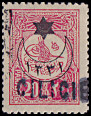 Briefmarke mit Aufdruck eines fünfstrahligen Sterns und Halbmond mit Jahreszahl "1332"