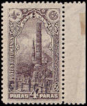 5 Piaster auf 2 Para grünblau, kopfstehender Aufdruck