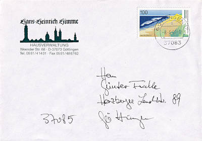 Inlandsbrief (51-500 g) vom 08.08.1997(11. Periode) frankiert mit einer Briefmarke a 3 Mark (=3 Mark)