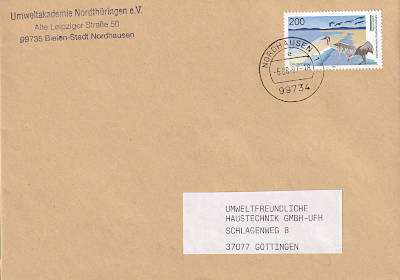 Inlandsbrief (1-20 g) vom 06.07.1996(11. Periode) frankiert mit einem Block a1 Mark (=1 Mark)