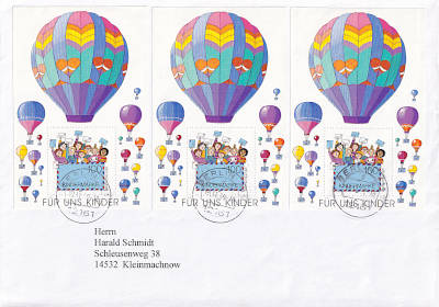 Inlandsbrief (51-500 g) vom 19.11.1999 (12. Periode) frankiert mit 3 Blocks a 1 Mark (=3 Mark) |