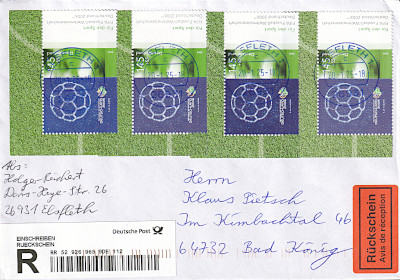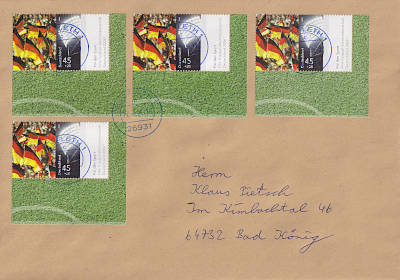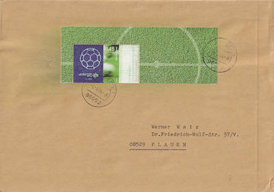 Auslandsbrief mit Luftpost (1-50 g) vom 21.07.2006 (4. Periode) frankiert mit einem Block a 3 € (=3 €) |