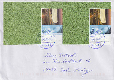 Inlandsbrief (21-50 g) vom 27.02.2025 (12. Periode) frankiert mit 2 Briefmarken a 55 Cent (=1,10 €) |