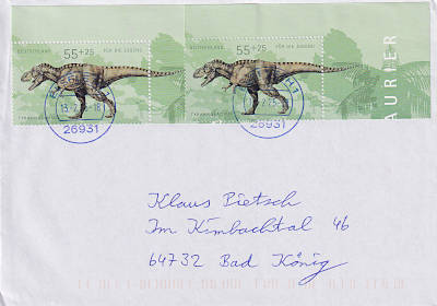 Inlandsbrief (21-50 g) vom 13.02.2025 (12. Periode) frankiert mit 2 Briefmarken a 55 Cent (=1,10 €) |
