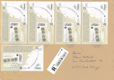 (501-1 000 g) vom 03.07.2024 (11. Periode) frankiert mit 6 Blocks a 0,85 € (=5,10 €,