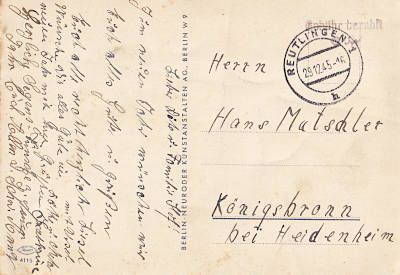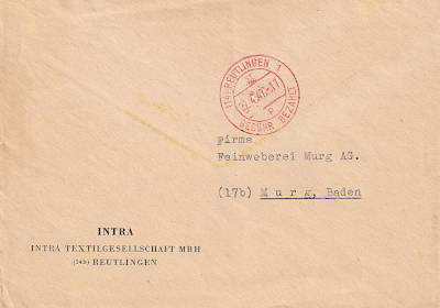 Reutlingen 1: Inlandsbrief (1-20 g) vom 22.04.1947 mit rotem Zweikreisstegstempel (bo2zbu) "(14) REUTLINGEN 1/ (Datum)/ p/ Gebühr bezahlt" |