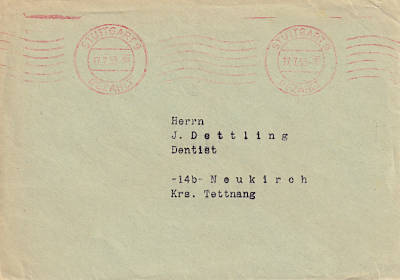 Stuttgart 9: Inlandsdrucksache (1-20 g) vom 17.07.1953 mit rotem Zweikreisstegstempel (bozbu) "STUTTGART 9/ (Datum)/ BEZAHLT" |