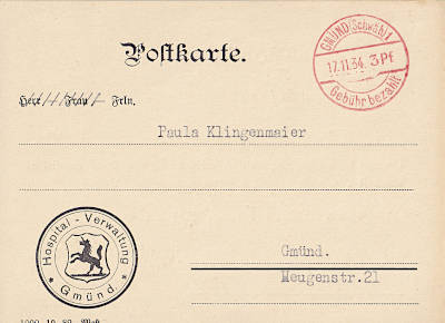 Schwäbisch Gmünd 1: Inlandsdrucksache (1-20 g) vom 17.11.1934 mit rotem Einkreis-stegstempel mit Bogen oben und unten (bozbu) "GMÜND (Schwäb.) 1/ (Datum) 3 Pf/ Gebühr bezahlt" |