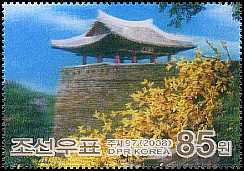 15.12.2008 Ulmil Pavilion in the famous garden of Pyongyang with corrugated plastic sheeting