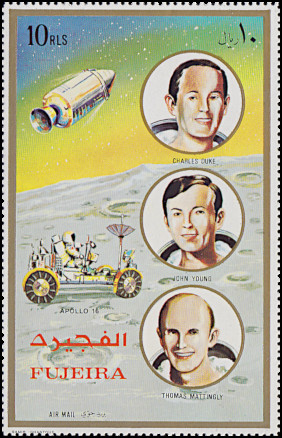 Besatzung: John Young, Thomas Mattingly jr. und Charles Duke jr., Mondauto und Triebwerksteil