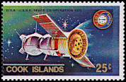3 Astronauten in Raum-kapsel, Emblem von Apollo-Soyuz |