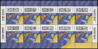 einsprachige Briefmarke: Druckbogen der als beabsichtigte Ausführung mit einem Druck unter Verwendung einer einzigen Sprache versehen wurde |