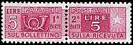 Doppelbriefmarke: Briefmarke die aus Abrechnungsgründen aus 2 Teile besteht (z. B. Paketmarke: die linke Hälfte wurde auf die Paketkarte und die rechte Hälfte auf den Einlieferungsabschnitt aufgeklebt) |