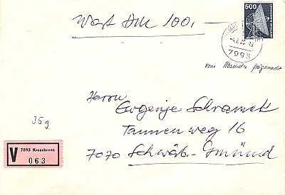 Zehnfachfrankatur: Postsendung aus Deutschland bei der die Briefmarke zu einem Zehntel ihres Nennwert verwendet wurde (z. B. Brief 24 Pfennig) |