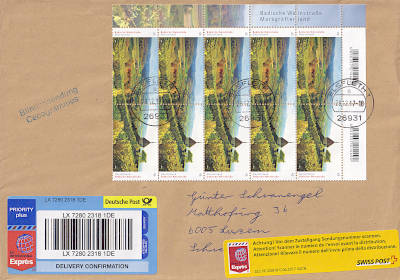 Mischfrankatur: frankiert mit Briefmarken mit 2 unterschiedlichen Wasserzeichen (2 x Wz. 1 Rauten, 8 x Wz. 2 Waffeln) |