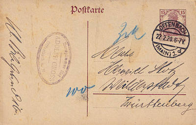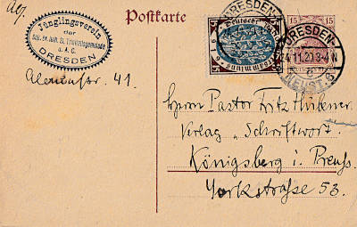 Ganzsache mit Bruch: Ganzsache mit starker Knickung des Papiers bei dem die Papierstruktur verletzt ist |