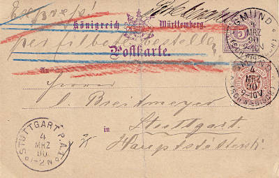 Ganzsache mit Bug: Ganzsache mit leichter Knickung des Papiers bei dem die Papierstruktur nicht verletzt ist |
