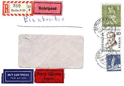 Brief mit Übergabe-Einschreiben, Eilzustellung, Luftpost und Rohrpost |