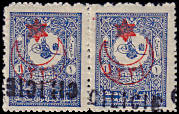 Zusammendruck mit doppeltem und ohne Aufdruck: Einheit bei der als beab-sichtigte Ausführung eine Briefmarke mit einem zweifachen Aufdruck und die andere mit keinem Aufdruck versehen wurde |