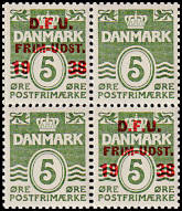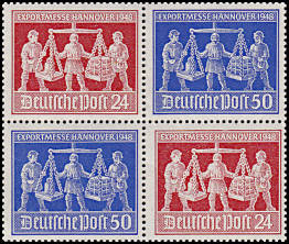 Zusammendruck mit schachbrett-artigem Aufdruck: Einheit bei der als beabsichtigte Ausführung nur jede zweite Briefmarke mit einem Aufdruck versehen wurde |
