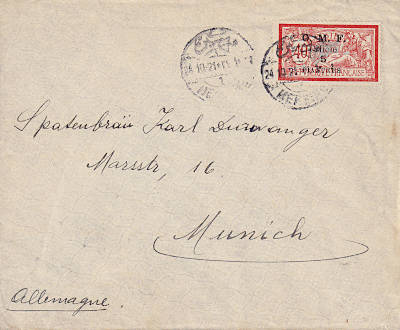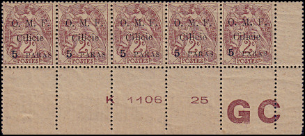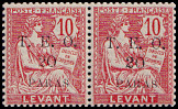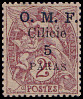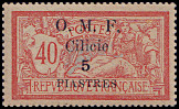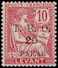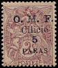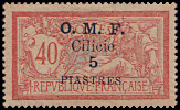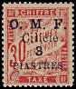 5 Piaster auf 40 Centimes rot/ blau |