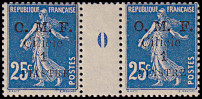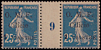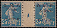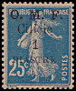 1 Piaster auf 25 Centimes blau, weißes Papier |