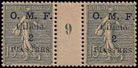 2 Piaster auf 15 Centimes graugrün |