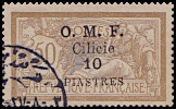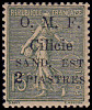 1 Piaster auf 25 Centimes blau, graues Papier |