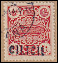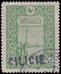 Briefmarke mit Aufdruck eines fünfstrahligen Sterns und Halbmond mit Jahreszahl "1332"
