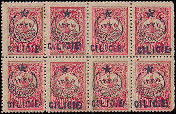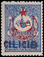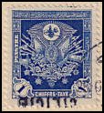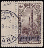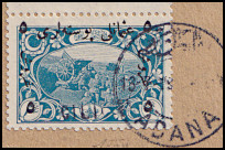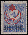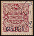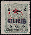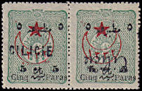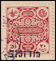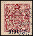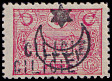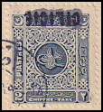 5 Piaster auf 2 Para grünblau, kopfstehender Aufdruck