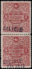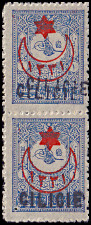 20 Para blau senkrechtes Paar mit öligem Aufdruck oben und doppeltem Aufdruck unten