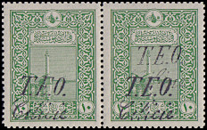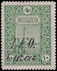 Probedruck mit "T. E. O. Cilicie" Hand-stempelaufdruck oben und doppeltem Schreibschriftstempel unten