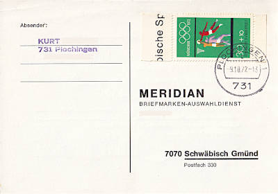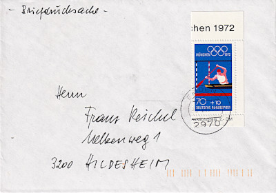 Inlandsbrief (1-20 g) vom 03.08.1972 (6. Periode) frankiert mit einer Briefmarke a 40 Pfennig (=40 Pfennig) |