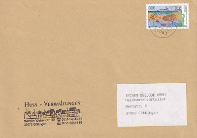 Inlandsbrief (51-500 g) vom 08.08.1997(11. Periode) frankiert mit einer Briefmarke a 3 Mark (=3 Mark)
