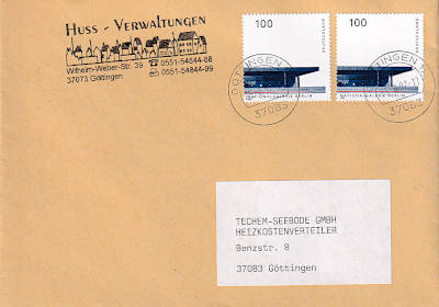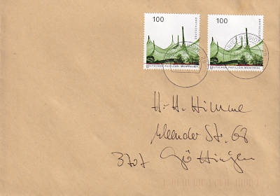 Inlandsbrief (21-50 g) vom 18.04.1997 (11. Periode) frankiert mit 2 Briefmarkem a 1 Mark (=2 Mark) |