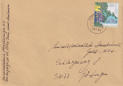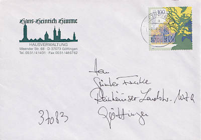 Inlandsbrief (1-20 g) vom 08.08.1997 (11. Periode) frankiert mit einer Briefmarke a 1 Mark (=1 Mark) |
