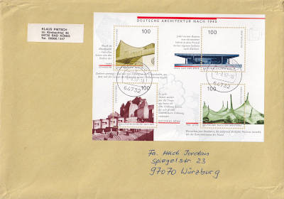 Inlandsbrief (501-1 000 g) vom 09.10.1997 (12. Periode) frankiert mit einem Block a 4,40 Mark (=4,40 Mark) |