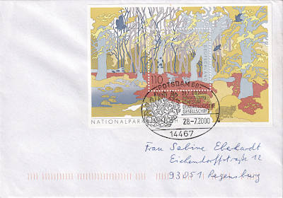 Inlandsbrief (1-20 g) vom 19.12.2000 (12. Periode) frankiert mit einem Block a 1,10 Mark (=1,10 Mark) |