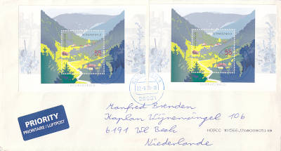 Auslandsbrief (1-20 g) vom 22.06.2021 (10. Periode) frankiert mit 2 Blocks a 55 Cent (=1,10 €) |