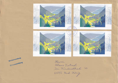 Inlandsbüchersendung (501-1 000 g) vom 20.07.2021 (10. Periode) frankiert mit 4 Blocks a 55 Cent (=2,20 €) |