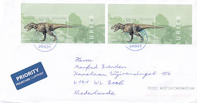 Auslandsbrief (1-20 g) vom 31.03.2022 (11. Periode) frankiert mit 2 Briefmarken a 55 Cent (=1,10 €) |