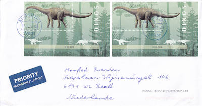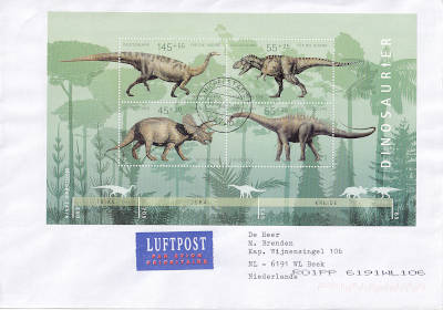Auslandsbrief mit Luftpost (51-500 g) vom 18.12.2009 (4. Periode) frankiert mit einem Block a 3 € (=3 €) |