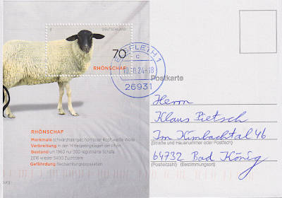 Inlandspostkarte vom 10.10.2024 (11. Periode) frankiert mit einer Briefmarke a 70 Cent (=70 Cent) |