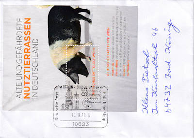 Inlandsbrief (21-50 g) vom 16.09.2016 (9. Periode) frankiert mit einer Briefmarke a 85 Cent (=85 Cent) |