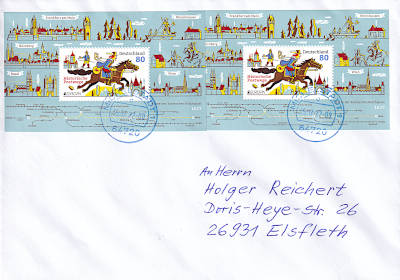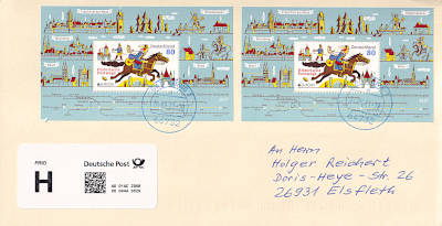 Inlandsbrief (1-20 g) vom 17.01.2020 (10. Periode) frankiert mit einem Block a 80 Cent (=80 Cent) |