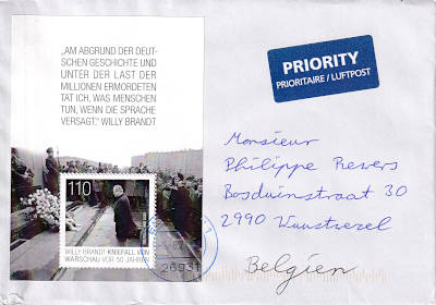 Inlandsblindensendung mit prioritärer Behandlung vom 17.03.2022 (11. Periode) frankiert mit einem Block a 1,10 € (=1,10 €, 0 Blindensendung 1,10 Prio |